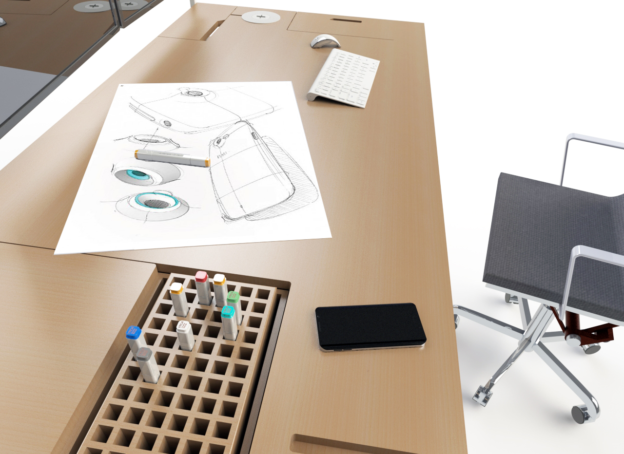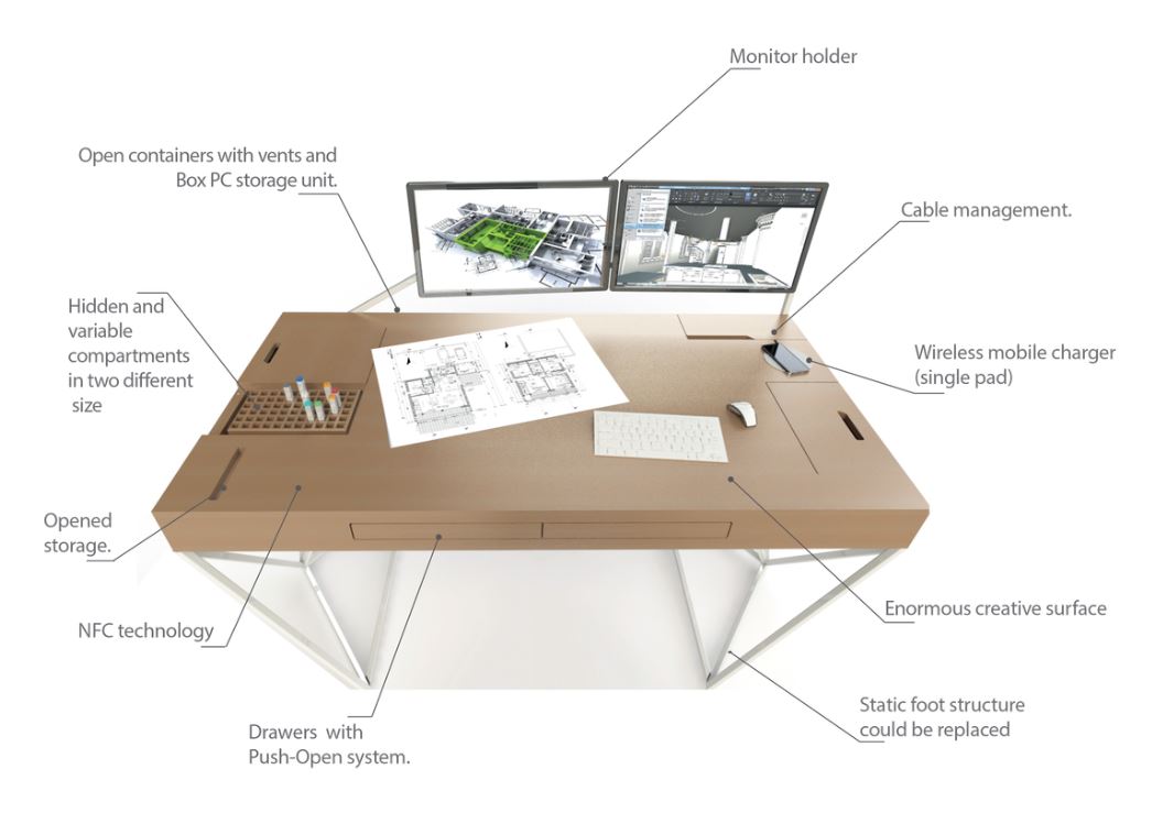 Ideal workspace for designers. It follows the "Clear desk" and "Fit To Use" philosophies.